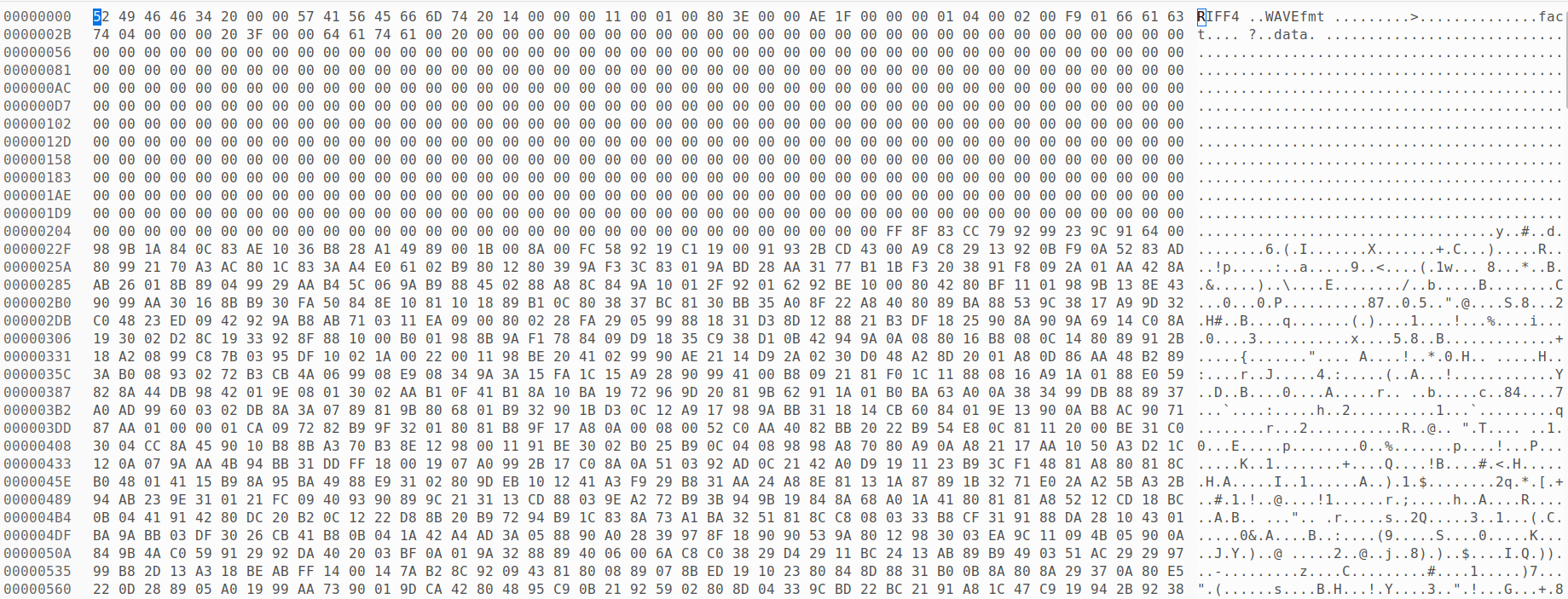 使用GHex打开使用帝尔复读机录制的音频: