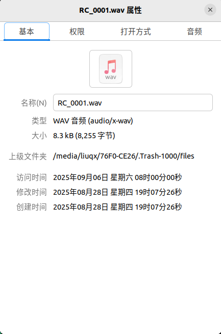 在复读机上录制一个音频,直接打开录制的加密wav文件: